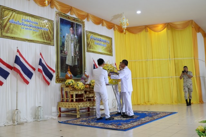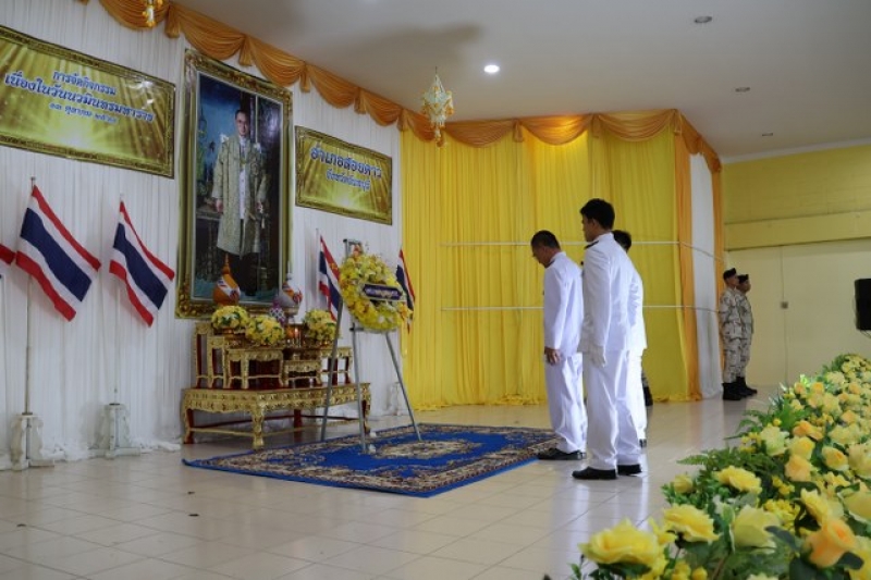 นายสิริชัย โสภิตเจริญ รองนายกเทศมนตรีตำบลสอยดาว เป็นผู้วางพวงมาลา