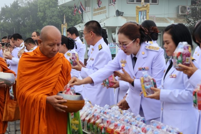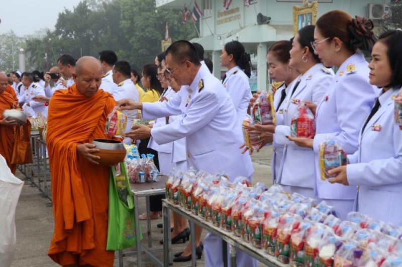 ช่วงเช้าทำบุญตักบาตร ข้าวสารอาหารแห้ง (แด่พระสงฆ์และสามเณร ๘๙ รูป)