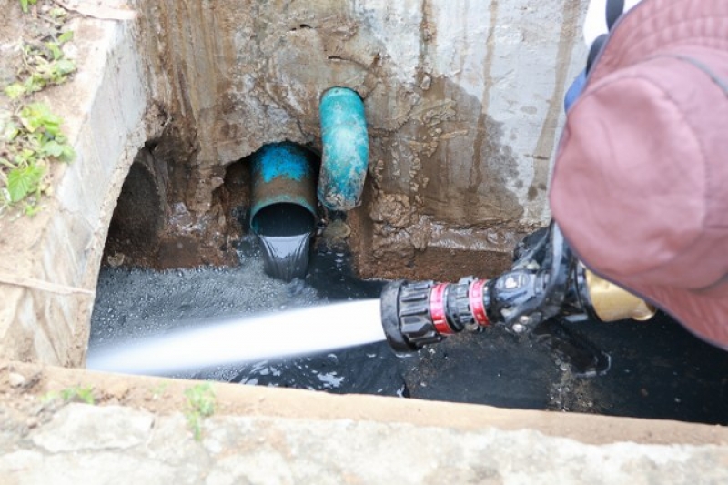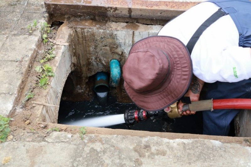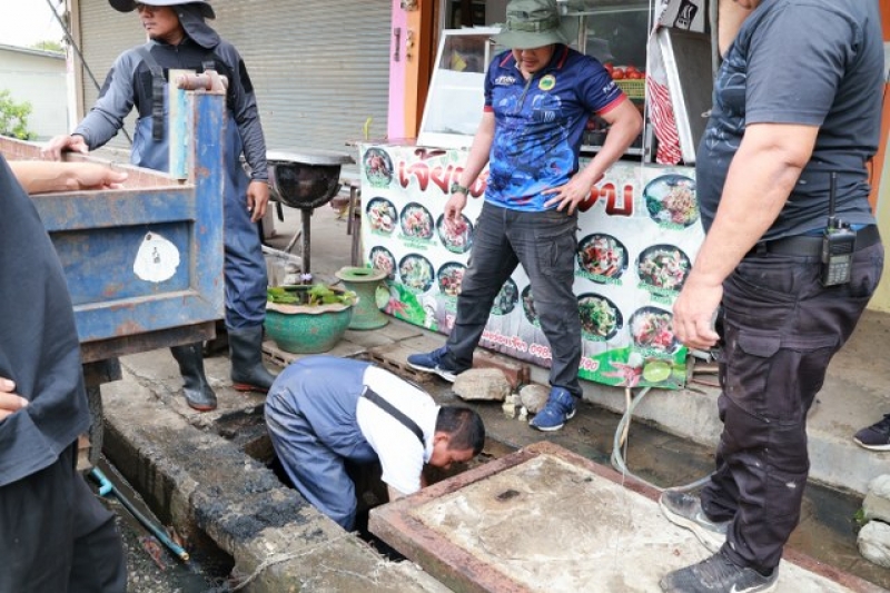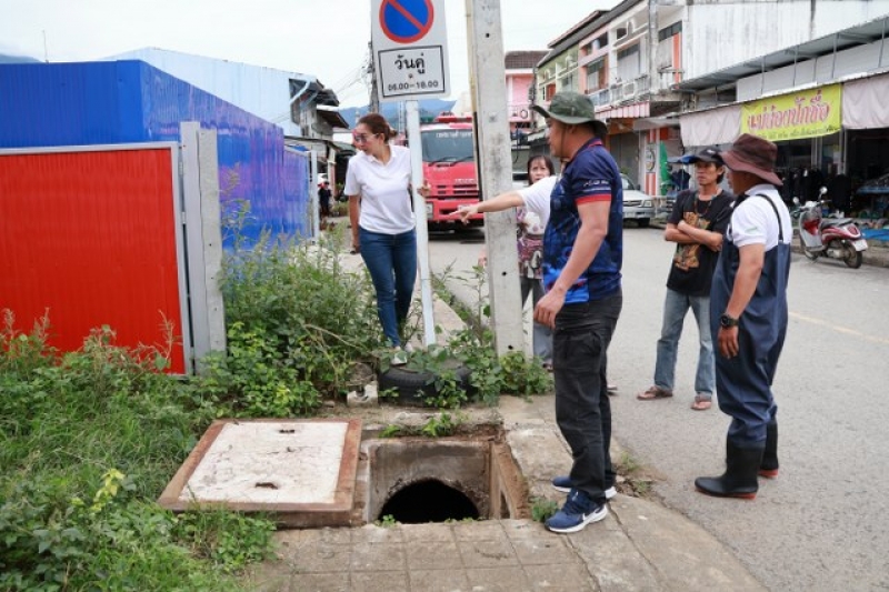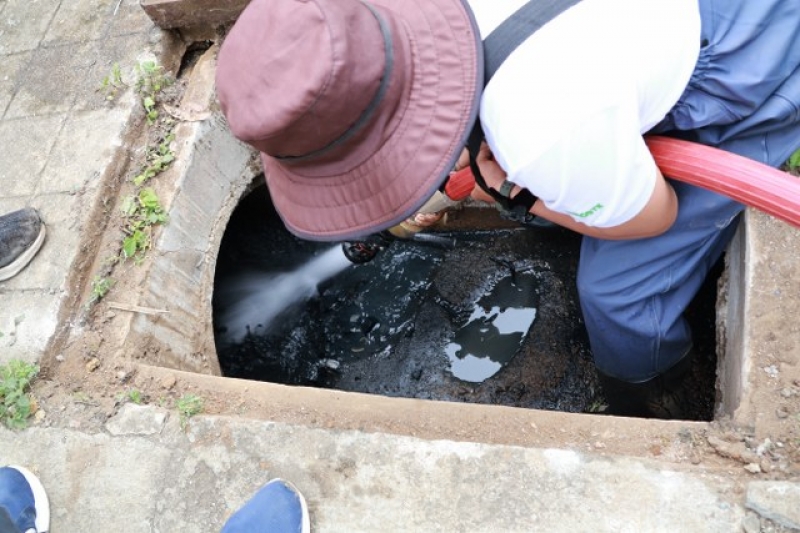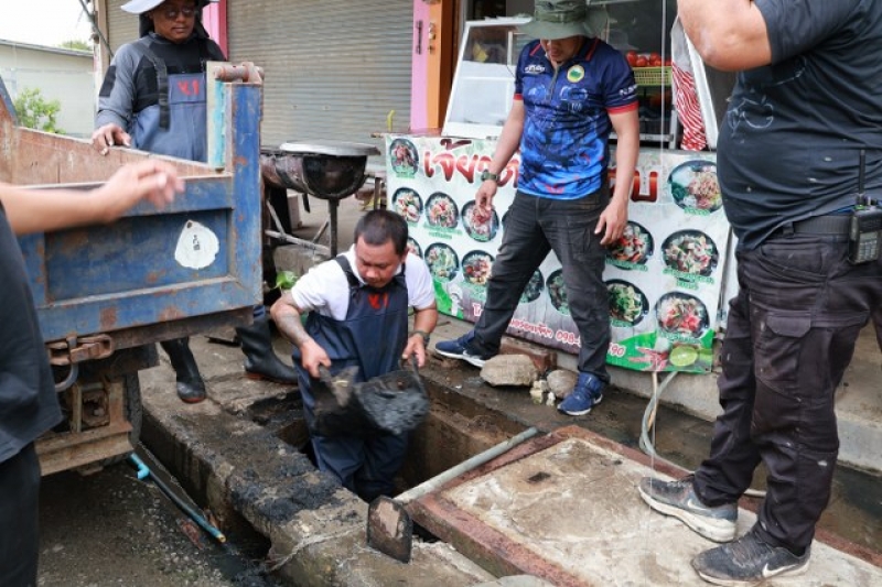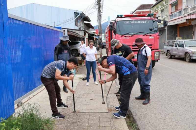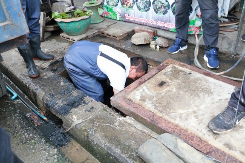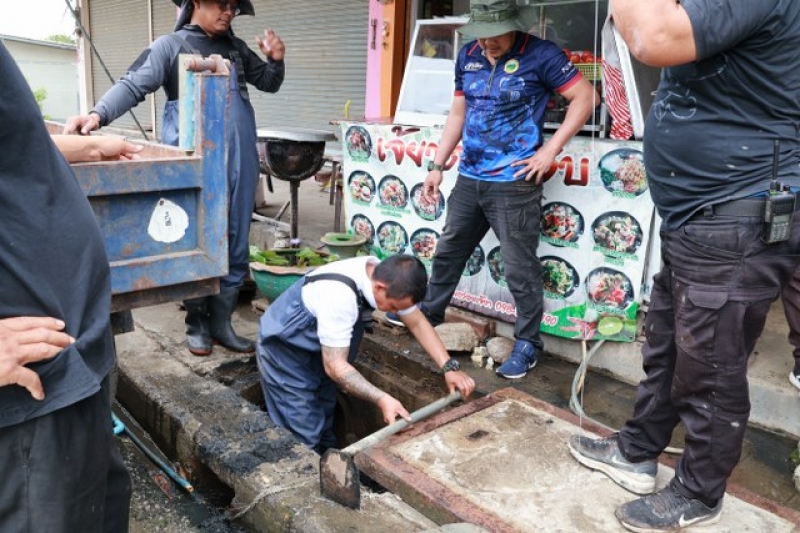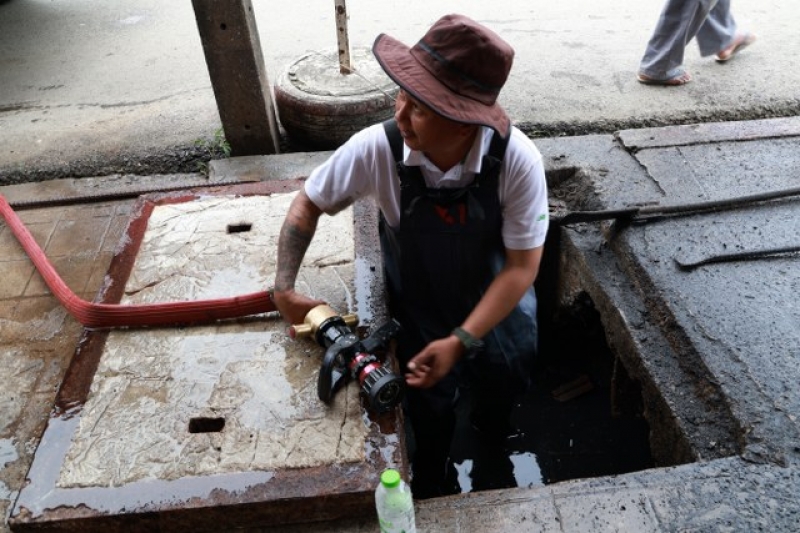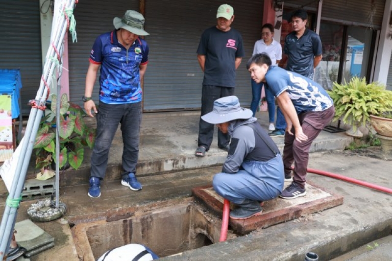 เจ้าหน้าที่งานป้องกัน ฯ และรถบรรทุกน้ำ 1 คันเพื่อดำเนินการฉีดล้างท่อระบายน้ำ