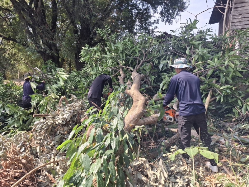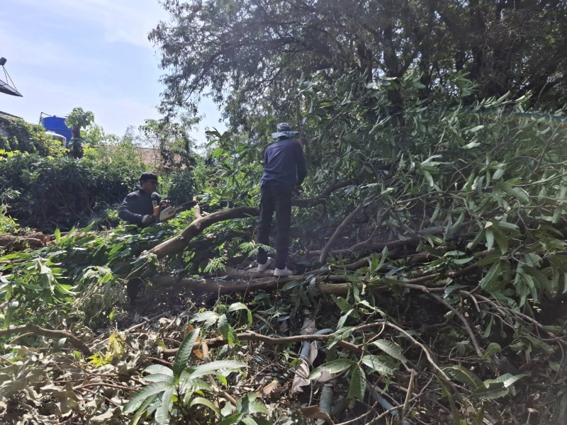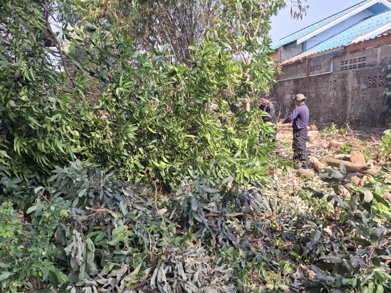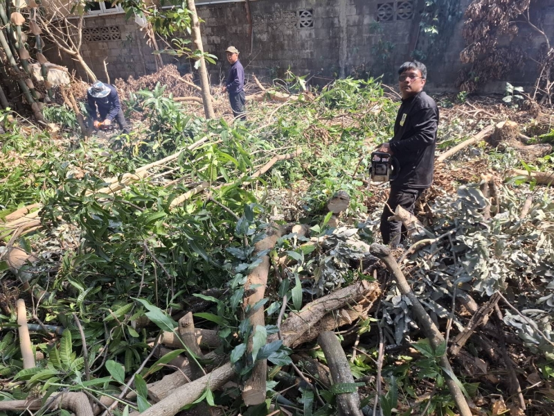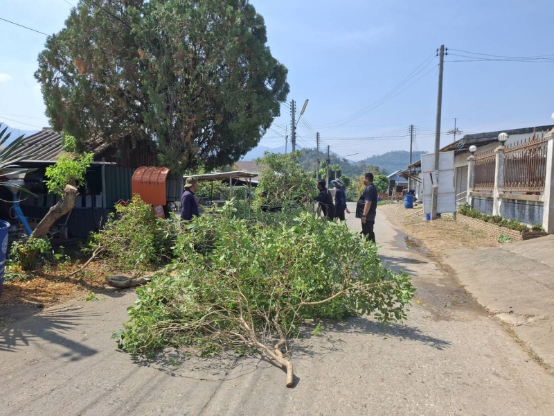 เจ้าหน้าที่งานป้องกัน ฯ ออกตัดแต่่งกิ่งไม้ที่ลุุกล้ำเส้นทางจราจร บริเเวณ ซอย 3